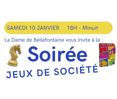 🤩 Rdv demain, samedi 10 janvier 2026 à la MDAVC à partir de 18h00 pour la Soirée Jeux de la DAME DE BELLEFONTAINE. … Afficher plusAfficher moins