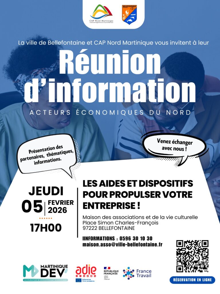 Le service Développement économique de CAP NORD et la Mairie de Bellefontaine vous convient à une réunion d’information sur les aides financières accordées par CAP NORD pour votre développement et l’attractivité de notre territoire :