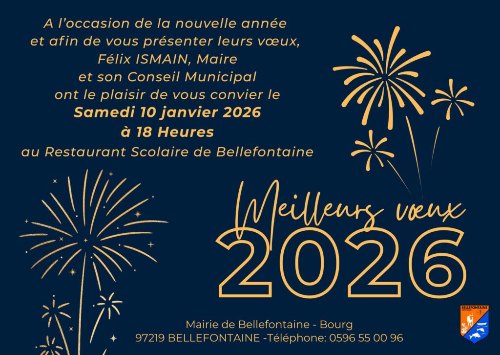 🌟 À l’occasion de la nouvelle année 2026, le Maire, Monsieur Félix ISMAIN, et son Conseil Municipal ont le plaisir de vous convier à la présentation de leurs vœux :