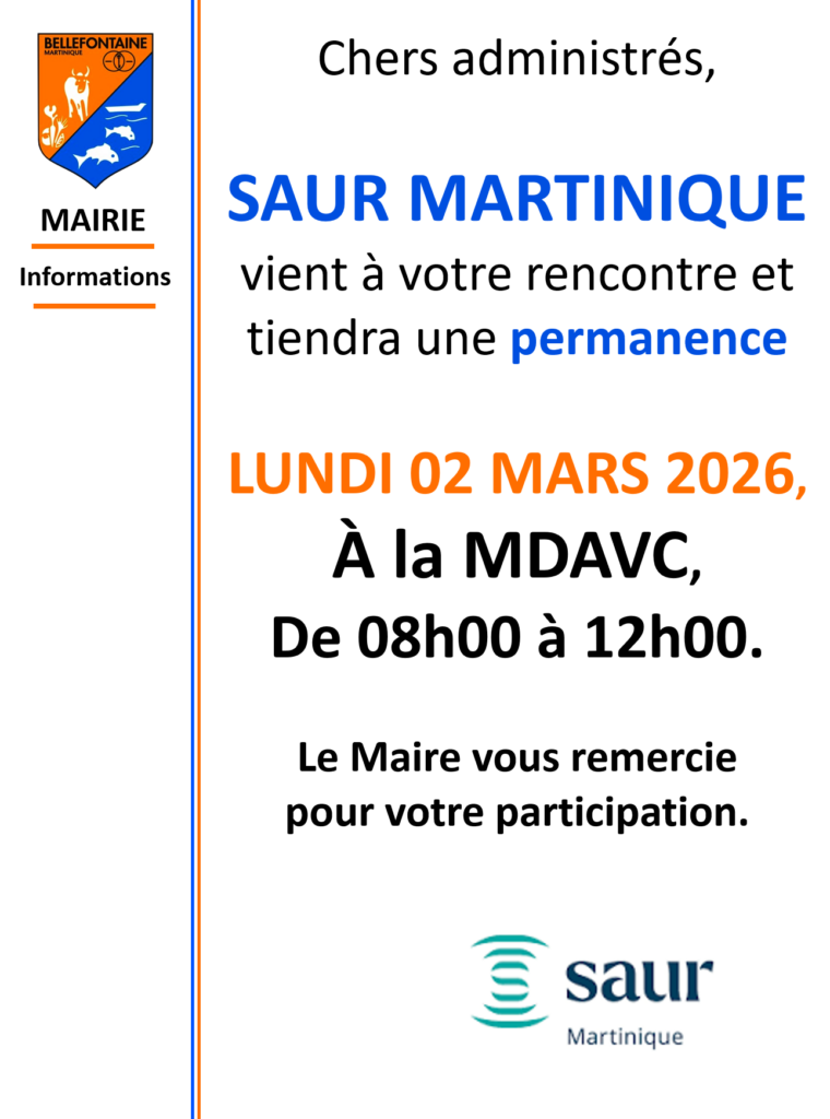 SAUR MARTINIQUE vient à votre rencontre et tiendra une permanence :