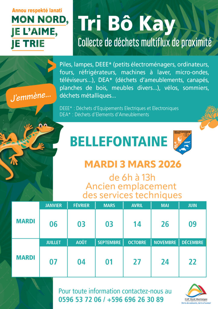 CAP Nord Martinique vous invite à mettre en pratique les gestes de tri, à respecter les consignes et les plannings de collecte afin de participer activement au maintien de la propreté sur le territoire Nord de la Martinique.